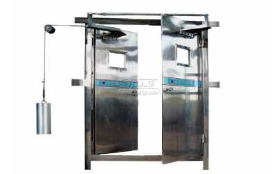 2、門扇為角鋼、鋼板、鋼板網組焊而成,鋼板網對應安裝鋼板門扇。