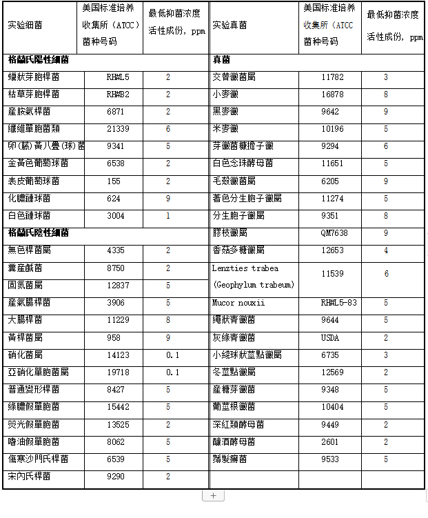 iHeir-TQ環(huán)保涂料防霉(抗菌)劑對細(xì)菌和真菌的突出低抑菌濃度: